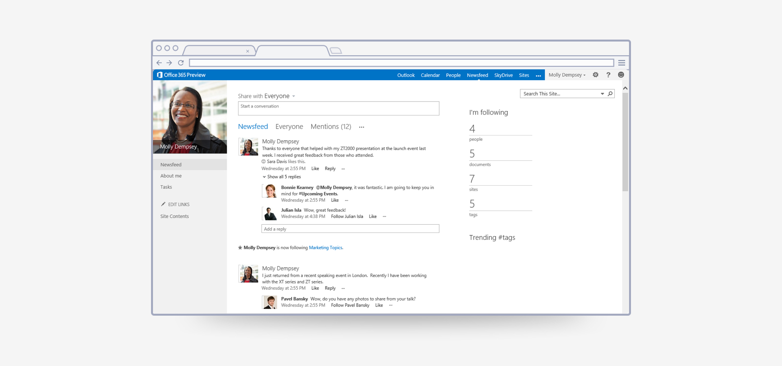 Social sharing function allows colleagues to share, reply and like posts just like Facebook.