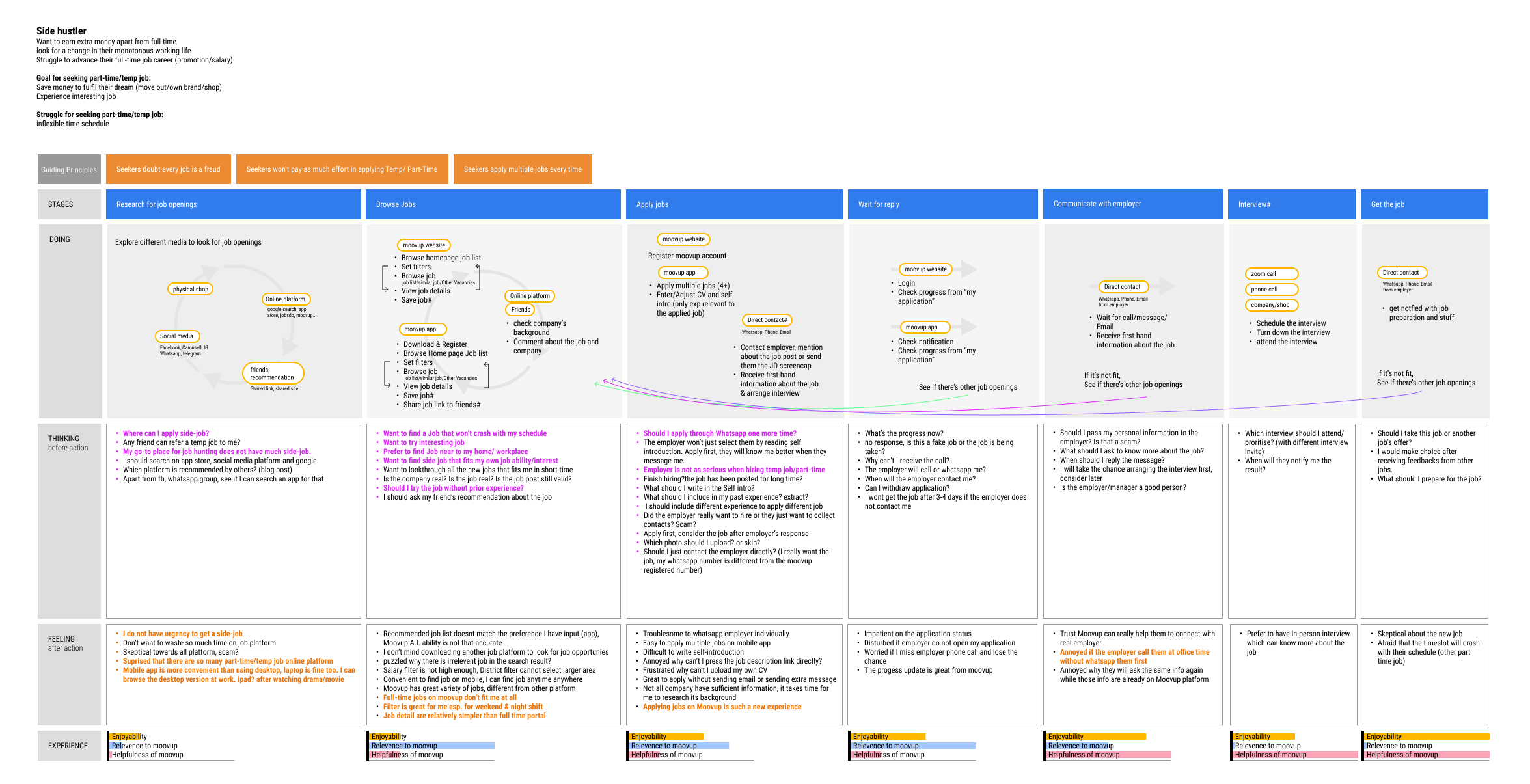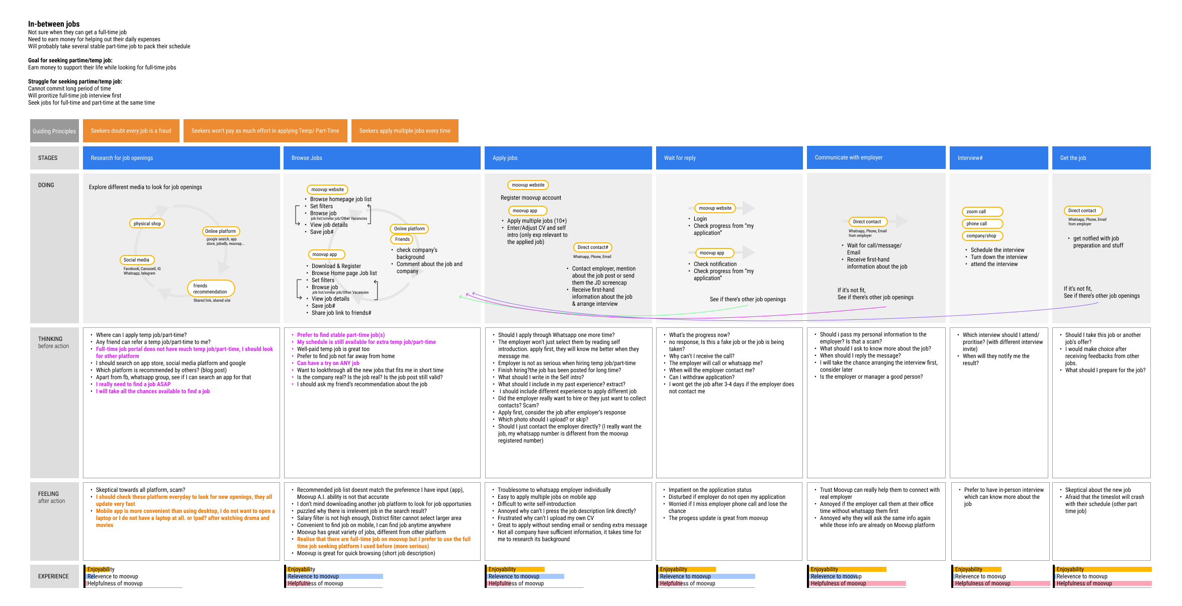 The Stuck: Users who are struggling to find full-time employment and see Moovup as a means to bridge the gap until they secure a permanent position.
