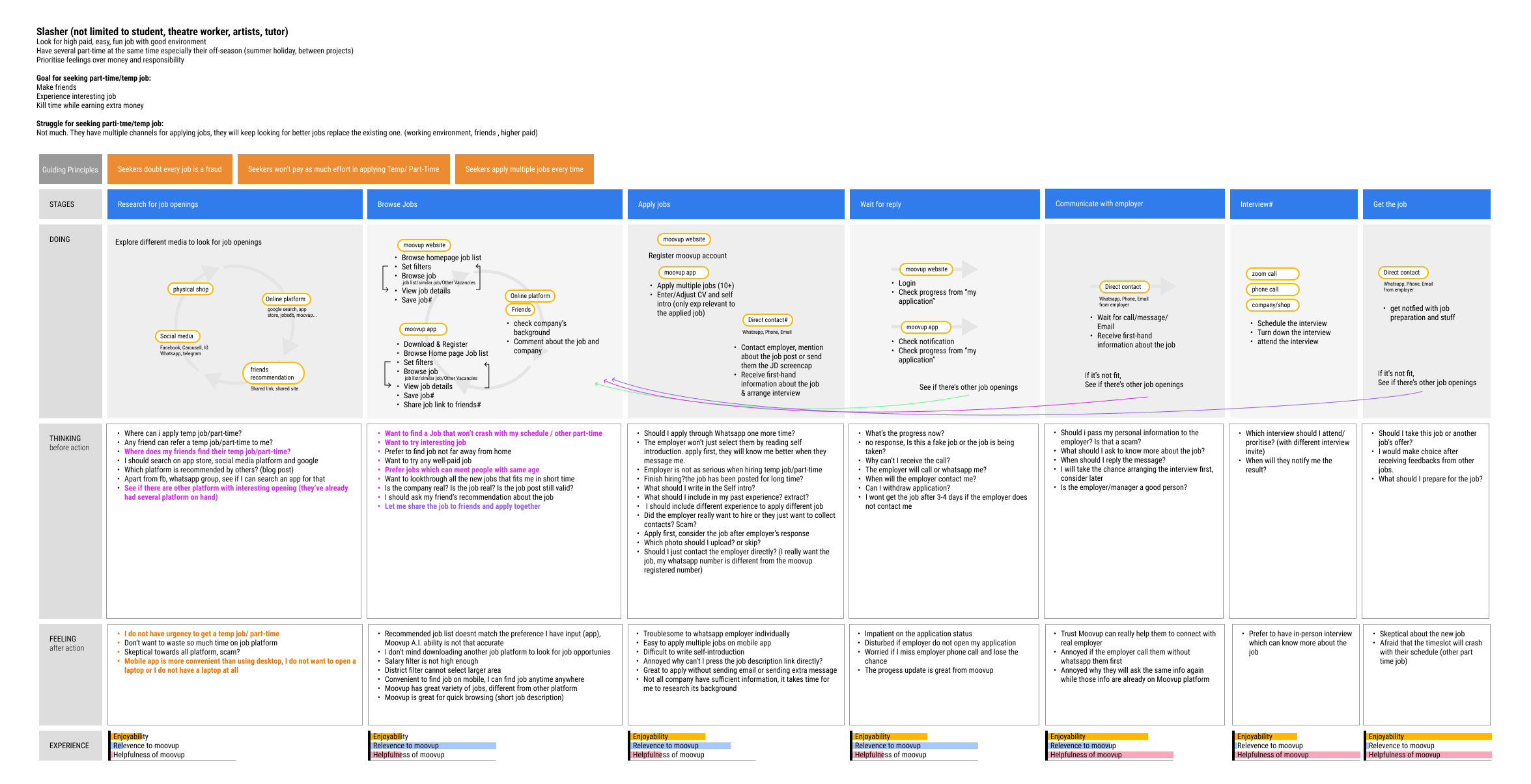 Our research uncovered several important insights into the behavior and preferences of Moovup users, shedding light on their job seeking habits and pain points.
